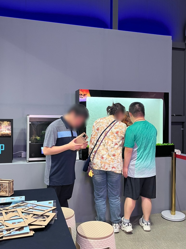 투명 디스플레이어를 감상 중인 사람꽃복지관 방문객분들 ㅎㅎ