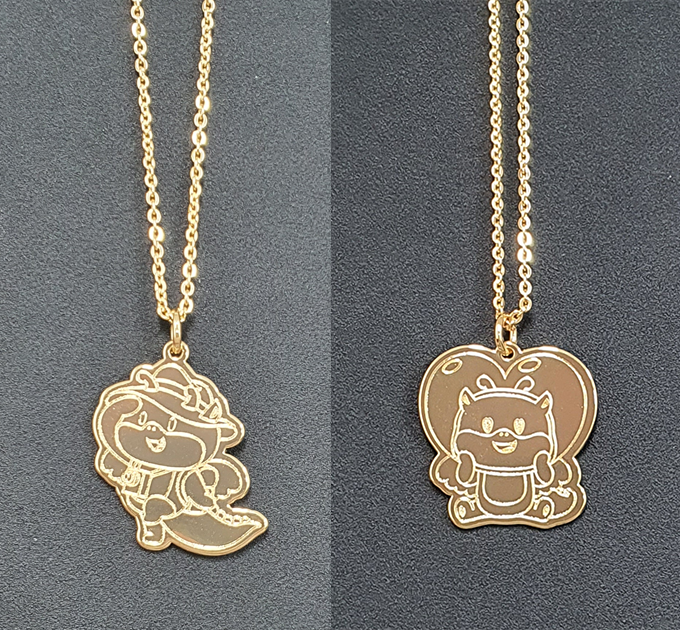 익산시 관광 브랜드 캐릭터인 마룡 펜던트 뒷부분에 레이저 각인을 추가할 경우 미아 방지에도 탁월한 효과가 있습니다.